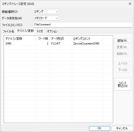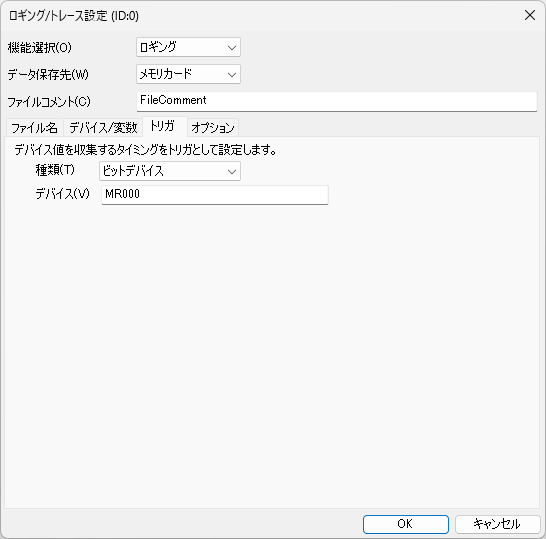 | 保存先 | メモリカード / CPUメモリ (/ 内部メモリ ※トレースのみ) |