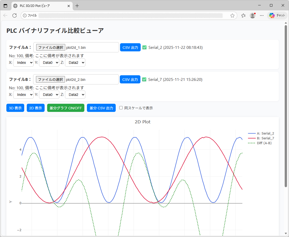 保存したファイルをサンプルのHTML「plot.html」をブラウザで表示します