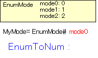 命令語 イメージ 内容 EnumToNum 列挙型の列挙値を出力します NumToEnum 列挙値から列挙型を出力します