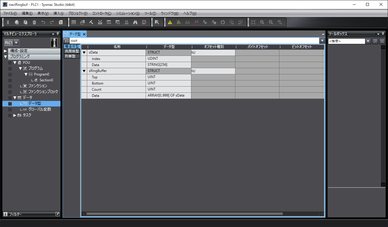 そのData構造体をリングバッファ用の構造体に入れるのですが、その時にバッファリングに必要なサイズだけ配列を設定します