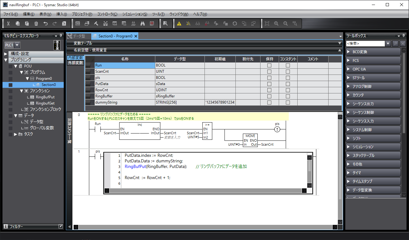 ファンクションにRingBufPutファンクションとRingbufGetファンクションをリングバッファのサンプルからコピーしておきます