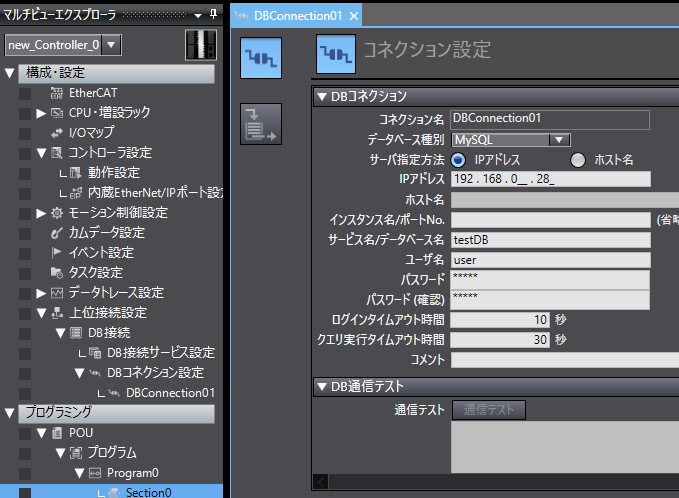 DBConnectionNameにはDBConnection設定で作成した"DBConnection01"を入力します