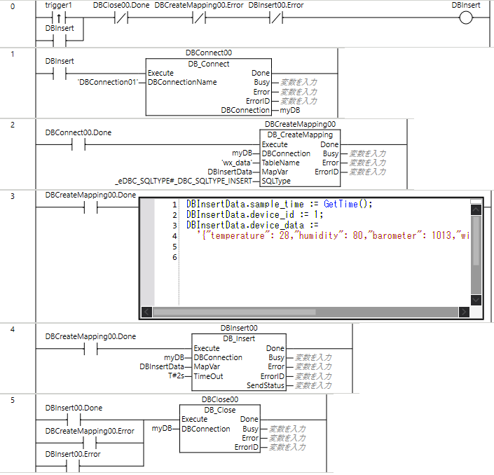 Trigger1をONにしてDBInsert実行中フラグをONにします