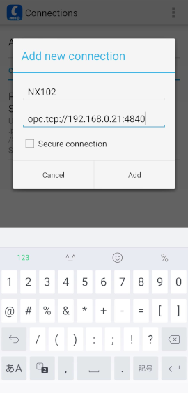 携帯アプリ Prosys OPC UA ClientでPLCと接続する (セキュリティなし)