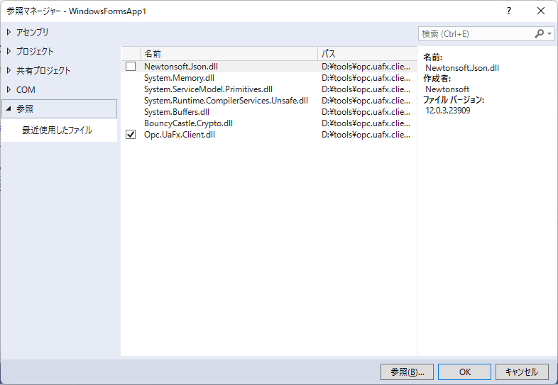 - ダウンロードしたファイルを展開してVisualStudioで UA Sample Applications.sln を開きます