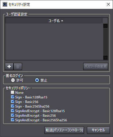 「匿名ログイン」を禁止にして、「セキュリティポリシー」のNoneのチェックを外して転送します