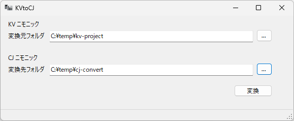 KVtoCJ.exeを実行して、変換元フォルダに 1.で保存したフォルダを指定します