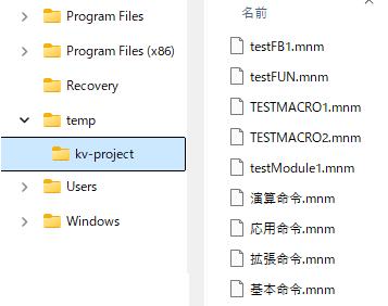 KV-STUDIOで変換したいプロジェクトを読み出して、[ファイル]-[ニモニックリスト]-[保存]を選択して任意のフォルダに保存します